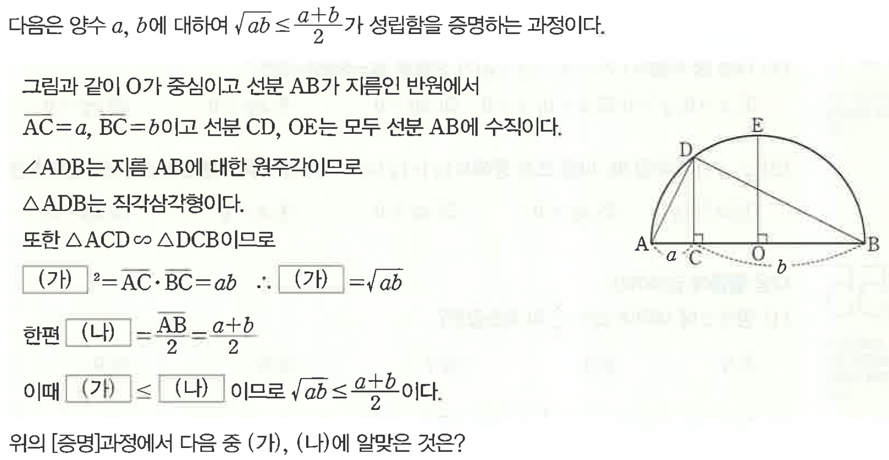 AB를 지름으로 하는 반원을 봅시다.